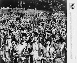 Stumbling upon a battered copy of Yurick's novel in some broken spine in the late 1970s, producer Lawrence Gordon [Rolling Thunder (1977), Predator (1987), Die Hard (1988)] immediately secured the film rights using his own money, and then commissioned David Shaber to adapt a screenplay and approached Walter Hill, whom he had worked with on Hard Times (1975) and The Driver (1978), to direct. Hill loved the whole notion but feared no studio would ever back the film as is, and he was right; sadly, most of the hesitation was due to the proposed all-minority cast. The project was then tabled in favor of a western, but when the financing fell through on The Lone Gun, Hill and Gordon tweaked their pitch and Paramount took the bait. And while these changes didn't exactly revert Yurick's street gangs to the romantic version of Wise, this new version wound up highly fantasized.