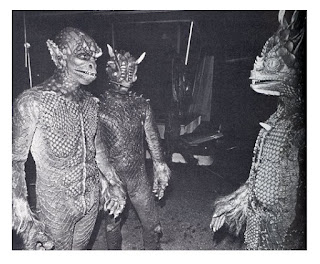 Then things really hit the fan when the Boleys are attacked in their motel room by two more monsters that make off with the skull, but one of them is hit by a truck as it tried to escape. Realizing this was a living and breathing gargoyle -- stress on the 'was', and much better proof of the same than the skull, Boley hides the body in their room over the protests of Diana, who feels these creatures were not trying to hurt anyone but just wanted the bones of their dead back. Boley doesn't disagree, which means they will most definitely return for the corpse, too. And so, he bullies Diana into helping haul the body to the gas station, where it is quickly loaded into the repaired vehicle. But before they can make an escape, a whole pack of gargoyles attack the station wagon and overturn it, rendering the passengers unconscious. And while his minions retrieve the corpse, a large winged gargoyle becomes fascinated by the prone Diana -- so fascinated he scoops her up after a little *ahem* ‘tinkering’ and carries her off into the desert, destination unknown...