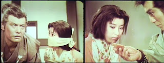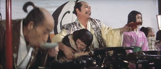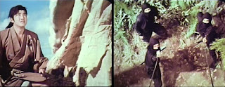 We open in the thick of it as a bloody revolt erupts in and around the castle of Lord Ogata (Hayashi); the benevolent ruler of the feudal Japanese kingdom of Oumi. Well, at least he was until his top general, Yuki-daijo (Amatsu), reveals himself to be a traitor and the instigator of this violent uprising. who then puts a sword through his former master, killing him. And as Ogata's wife tries to escape, she is also killed by Orochimaru (Otomo); the ruthless leader of a band of mercenary ninjas, whom the corrupt Yuki-daijo hired as muscle to back this hostile takeover. Apparently a success, Orochimaru reports all other loyalists to Ogata have been liquidated, leaving only one loose end to wrap-up and snuff-out before Yuki-daijo officially takes over: Ogata’s young son and rightful heir, Ikazuki.