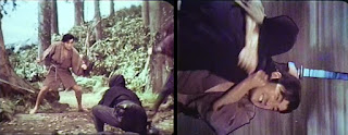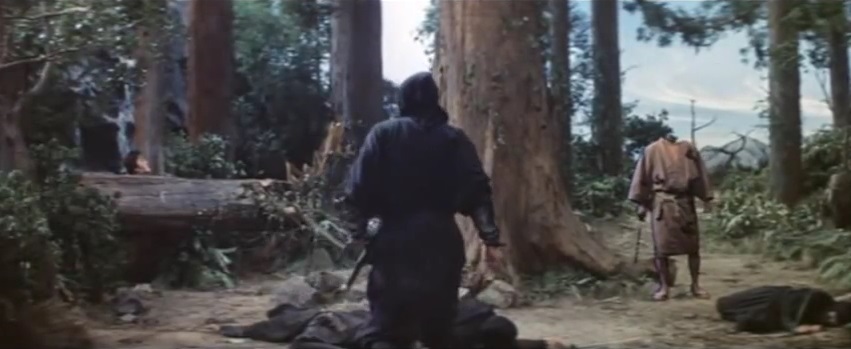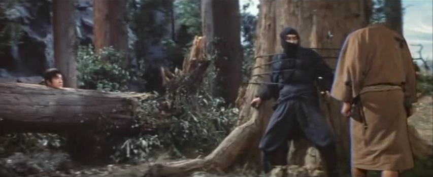 But this is only the beginning of our tale, as we jump ahead several years and find a now much older Ikazuki (Matsukata) training hard in the art of ninjutsu and magics under the tutelage of a wizened old hermit named Dojin-Kiki (Kaneko), who had sent the eagle to save him. And after successfully completing the latest battery of hazardous tests and surviving the obstacle course from hell, Ikazuki is informed his training is now complete and it’s time to return to the outside world and embrace his destiny to do good for all of mankind, unlike Dojin-Kiki’s last pupil.
