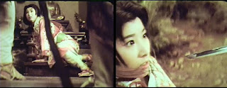 Even as it settles into a melodramatic groove, chock full of budding romance, double-crosses, damsels in distress, and a staggering amount of mayhem, death and destruction, The Magic Serpent has a certain indelible charm, and it is wonderful to behold and a pleasure to endure as the insanity slowly escalates from scene to scene and showdown to showdown as Yuki-daijo and Orochimaru switch tactics, no longer hunting for Ikazuki, but will wait for the young hero to come to them on his quest for vengeance. Seems Orochimaru has a (somewhat convoluted) plan involving Zenbei (Hara) and his seven specially trained super-assassins to take out Ikazuki so he can pretend to be Ikazuki so he can take over the kingdom. (Why he doesn’t just kill his boss and takeover and be done with it? Well, ya got me there.)