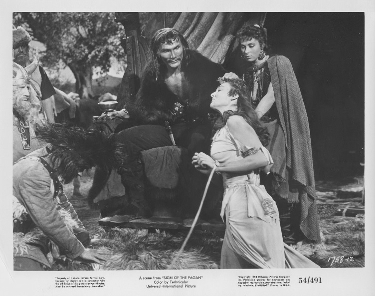 A statuesque beauty, Allison Hayes had the talent to be big but her career seemed to be cursed from the beginning by freak accidents and bad timing. Spotted as a model and soon signed to a film contract, her first big breakout role was in Sign of the Pagan (1954), but she was injured during the production when co-star Jack Palance let his method-acting get away from him during a lovemaking scene, resulting in several broken ribs for Hayes. (She gets her revenge on-screen.) This led to a lawsuit against Universal, who terminated her contract.