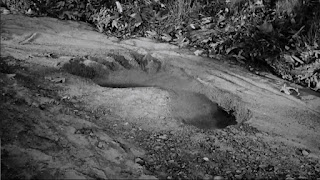 But as the sun rises and a frazzled Harry tries to pack up Honey and head for the hills, Deputy Charlie rounds them both up for an escorted ride to the Fowler ancestral hacienda. Seems at some point during the night, a delirious and half-dead Nancy was found on the roof of the pool house -- minus that diamond necklace. And since Harry was the last one seen with her, and it sure looked like he was ready to bug-out with another woman, the Sheriff has a few questions for the couple. But as a sedated Nancy fitfully sleeps, Harry denies any knowledge of what happened to his wife, where the necklace is, or where those strange scratches and apparent radiation burns on her neck came from. And with Honey providing his prime suspect a false alibi, the Sheriff is forced to give Nancy’s ramblings of a space-giant a closer look, which don't seem quite as outlandish with the discovery of several giant footprints; and so, he and the Archer’s butler (Terrell) head off into the desert in search of an alien diamond thief.