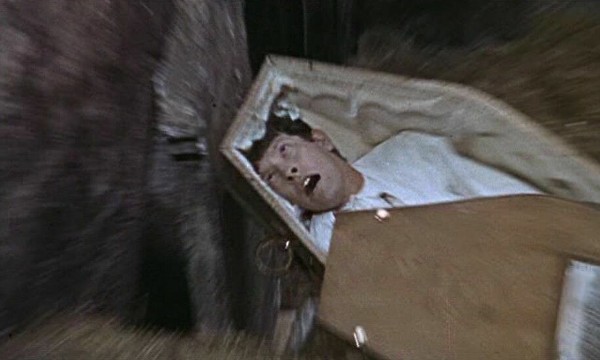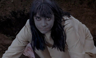 But this by no means ruins the film -- no, far from it. Gilling and cinematographer Arthur Grant paint an eerie and creepy picture, with some very effective crash-zooms. Several sequences readily stand-out, starting with some low-angled hand-held work when Sylvia is accosted, which let them really put one over on the censors as far as I’m concerned. And there’s the slightly blasphemous sequence where Gilling cuts between Alice’s funeral and Hamilton’s ritual where he overpowers Sylvia. Alice’s subsequent resurrection is creepy as hell, utilizing several dissolves to accomplish her transformation, which segues into Thompson’s dream sequence, where everything is a bit off kilter and the lights play off the eerie mist as the creatures slowly unearth themselves. It’s startlingly effective.