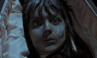 Poor Jacqueline Pearce, between this and donning the extensive make-up in The Reptile had the pretty actress swearing off these kinds of pictures. And on top of having to set through the plaster-casting process for her prop head, the admitted claustrophobic refused to get in the coffin during her resurrection sequence until assistant director Bert Bart agreed to lie beneath her and assure her through it. Make-up F/X guru Roy Ashton designed the zombies, employing layers of crumpled tissue paper, latex and special contact lenses to startling effect.
