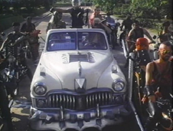 This catastrophe, in turn, activates a signal somewhere inside the domed island to the mainland, activating a horde of Atlantean sleeper agents / Road Warrior cosplayers, who lay waste to the Keys and most of southern Florida, who come into direct conflict with a trio of soldiers of fortune (Connelly, King, Rassimov), the archeologist, and several other survivors of the doomed sub expedition and whatever stragglers they manage to pick up after they land in what little is left of Little Havana. And from there, wind up in a fight for the lives. *whew* Got all of that? Good.