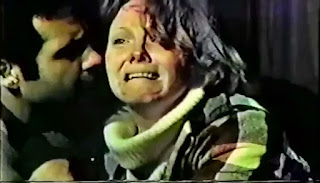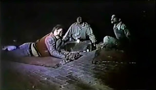 One of the biggest faults found with Screams of a Winter Night is the throwaway wraparound segment proves to be the most interesting and entertaining part of the movie. Otherwise, the film is a bit of slog as it bogs down in these well-worn and nearly worn-out tales; but that ending is kind of amazing and really well executed, even employing one fairly effective POV crash-cut and zoom, when Shitaba bonzai dives on the cabin and takes out the door, beating Sam Raimi to the Evil Dead punch. Amazingly enough, all the outside wind effects were accomplished by a helicopter that also provided some pretty spiffy aerial footage of the fleeing campers -- more cost-saving measures to be sure. (Before shooting, the pilot warned everyone if they heard a certain noise from the engine to find cover immediately.)