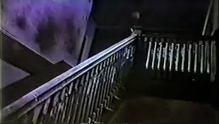 Once they settle in, bemoaning the fact they snuck a candle in instead of beer or a broad, the trio suddenly hear noises coming from above. Figuring it's their frat-masters trying to screw with them, Billy decides to turn the tables and sneaks upstairs to try and ambush them. Time passes, the noises continue (-- that honestly sounds like a loose alternator belt on my old Buick), but Billy doesn’t come back. Parker thinks they should just leave, but Ron doesn’t want to wash out of the fraternity and coaxes his fellow pledge into joining a search of the upper floors.