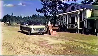 And while the others gawk or round up supplies -- mostly beer, the attendant (Ragsdale) is a little surprised to hear they’re headed to Lake Durand since no one in their right mind heads up there this time of year. (And judging by the condition of the trees and thickness of the coats everyone is wearing I’d say we’re talking dead of winter somewhere in the south.) Then, John cuts this bumpkin off before he can go into any details about the weird stuff that goes on up there -- a warning to stay away, really, wanting that privilege all to himself.