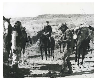 Thus, this readily explains why the second rider, while escorting the wife and son of an immigrant farmer who refused to leave his home to be ransacked by “a bunch of drunks,” first abandons his charges when Ulzana attacks them on the trail back to the fort, but turns back to help -- this help being a bullet in the head for the woman (-- thus saving her from the Apaches), and then makes an attempt to get away with the boy.