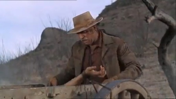 Knowing Ulzana will need more horses now, they head for the nearest source but, again, get their too late and find a homesteader hung upside down on a fence and burned alive. They then find his wife tied to a wagon, alive but extremely brutalized. And since the Apache would normally rape a captive to death, McIntosh feels this is Ulzana scheming again, figuring DeBuin would send her and an escort back to Ft. Lowell so he can ambush them for their horses. Managing to convince DeBuin of this, they decide to lay their own trap with McIntosh leading a small party back toward the fort to draw Ulzana out while DeBuin hangs behind, waiting for signs of battle to swoop in (hopefully) in time. All of this hinges on Ke-Ni-Tay finding and taking out the probable look-out Ulzana has spying on them and DeBuin not jumping the gun once (and if) Ulzana takes the bait.