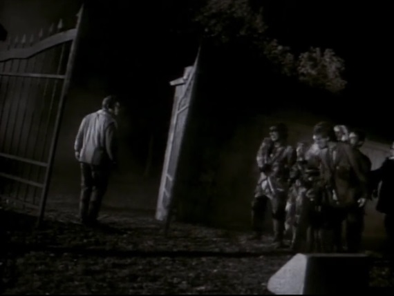 This, of course, doesn’t go well at all and Mark winds up shoved into the zombie display while Sarah may have just entered the Marquis de Sade (J. Kenneth Campbell) exhibit voluntarily as, once inside, we find out she has some *ahem* long simmering hang-ups and sadomasochistic tendencies. Meanwhile, Mark is stuck in a graveyard, where the undead are surfacing and swarming around him. Making a break for the gated entrance before he gets eaten, our hero runs smack into some kind of invisible barrier that won’t let him leave. From there, it becomes a harrowing test of wills as Mark realizes the zombies can’t hurt him if he doesn’t believe any of this is real. And once that’s established, he tries to breach the barrier again and, to his relief, finds himself back in the museum, where he must avoid Lincoln, Hans and their one man brute squad (Grant) as he makes his way into the Marquis display to rescue Sarah, currently strung up and whipped bloody by the notorious hedonist.