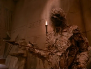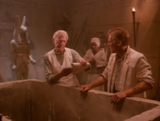 Unfortunately, the next display he checks doesn’t have a victim yet, which zaps him into an Egyptian tomb, which leads to my favorite sequence in the whole film, where Roberts becomes an unwilling participant in The Curse of the Mummy’s Elbow. Sixteen down.