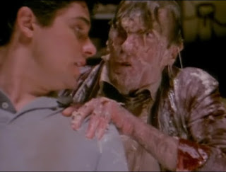 Anyhoo, love this movie, from the anachronistic tone -- essentially, if it looked cool it was in the picture, to the mindless violence, to the creature effects, to Roger Bellon's pitch-perfect score, to the sleeve-wearing perversity, to the execution of the concept in general. The cast is pretty great, too. With nods to Warner, Galligan, Johnson, Ashbrook and Foreman, who is simply adorable. I have no idea why Galligan’s career stalled after Gremlins (1984) exploded. And Hickox and Foreman kind of became an item for a while after making the picture, starring together in the sci-fi spoof, Lobster Man from Mars (1989). Alas, a nasty break-up soon followed, which is why Foreman didn’t appear in the sequel apparently.