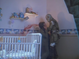 Hickox’s shooting script called for displays of Friday the 13th (1980) villain, Jason Vorhees, Carpenter’s alien from The Thing (1982), and the five telepathic children from Village of the Damned (1960) but they couldn’t be cleared for legal reasons. And so, the eighteen displays of the “most evil beings” consisted of a werewolf, the Marquis de Sade, the Phantom of the Opera, the Mummy, a Romero-era zombie, Jekyll ‘n’ Hyde, Frankenstein’s Monster, Jack the Ripper, the Invisible Man, a cannibal witch-doctor, a golem, a traditional witch, a snake-man circus freak, a generic alien invader unearthed in the arctic, a generic axe-murderer in the woods, a man-eating plant, and a killer baby.