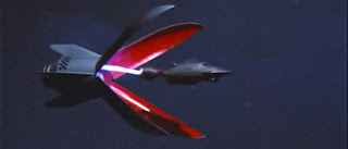 With that, the AAB-Gamma successfully launches, but once clear of Earth’s gravity there is a sudden spike in radiation, which they trace to the equally sudden appearance of the dastardly UFO -- that by all rights doesn’t look mechanical in origin at all, but more of a sentient and hostile Hostess Fruit Pie. Anyhoo, this spike in radiation also explains the abrupt lack of communications with the other lost flights as the discharge knocks out the AAB’s radio. With that, Commander Sano turns tail and floors it before they meet the same fate as the others, limping back to the FAFC’s moon-base for repairs.