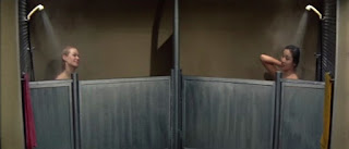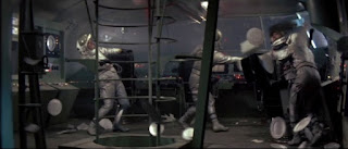 Here, our movie makes one of many abrupt left turns as the apparent urgency of the situation is put on hold. (Hell, they don’t even bother to file a report!) Seems the AAB crew made it back in time for Happy Hour, and so, decked out in their hippest attire, they knock a few back at the base’s martini lounge, where we also run smack into a romantic triangle subplot between Sano, Lisa, and Michiko (Harada), one of the moon-base’s operatives. And if I’m reading my signals right, Lisa is openly pining for Sano, Sano is really secretly pining for Machiko, and Machiko is extremely jealous of Lisa’s proximity to Sano, and therefore, won’t give Sano the time of day. Or Lisa might have the hots for Michiko, too, as far as I can tell. *shrugs* Got all that? Good. Now, moving on...