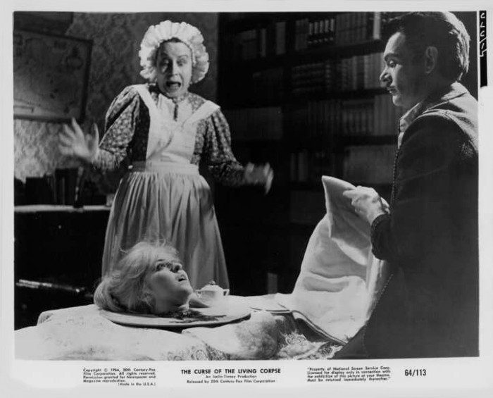 Thus and so, just like with AIP, these films began life with just a couple of titillating titles Iselin cooked up: The Curse of the Living Corpse and The Horror of Party Beach, in which a script was then concocted to fit. Originally, Curse of the Living Corpse (1964) was to be the top bill, was shot first, and shows more polish with its Gothic setting and cast culled from Tenney's theater buddies. And it's a pretty good film, too, much better than being just Roy Scheider's anomalous film debut, but it was destined to become a second banana to it’s second feature that was still being scripted by Hilliard while Living Corpse was shot.