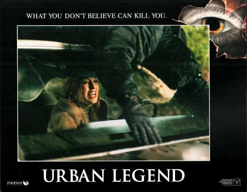 Now, while the makers of the film Urban Legend (1998) would like you to believe that they were the first major motion picture to be based upon or utilize this type of folklore, that is patently false. Horror films had been tapping into the stuff since the Silents, and the Slasher Movie genre, to which Urban Legend belongs, were milking these things dry since the days of Halloween (1978), where babysitters are menaced by an escaped killer, When a Stranger Calls (1979), where the killer was in the house all along and on another extension, and Friday the 13th (1980 and The Burning (1981), which were both loosely based on the urban legend of Cropsey, a mad killer of children, who had a hook for a hand.