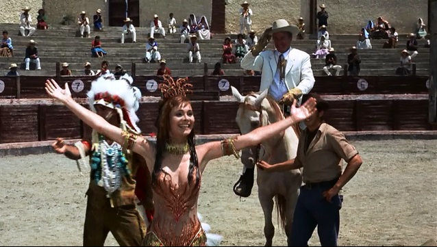 Enter Tuck Kirby (Franciscus), a former rider and stuntman for this outfit, who now buys acts for Buffalo Bill Cody’s more renown and successful Wild West Show. There to purchase Omar the Wonder Horse, this derelict operation’s only real attraction, whose act is being ridden up a series of ramps and then diving off a high platform into a blazing pool of water.