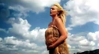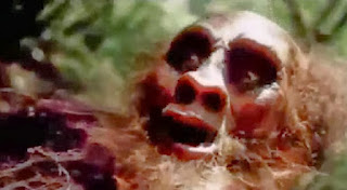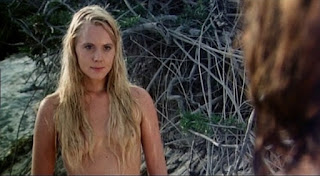 And together, these two, along with five more credited screenwriters -- FIVE!, including Gisella Longo, who gave us Franco Nero punching sharks in the face in the totally gonzo, The Shark Hunter (1979), and Jaime Comas Gil, who penned A Fistful of Dollars (1964) and Danger! Death Ray (1967), concocted the plot of Adamo ed Eva, la prima storia d'amore, which translates as Adam and Eve, the First Love Story. Now, you’re probably asking yourself, Waitaminute? What does a love story derived from the Book of Genesis have to do with cannibals? And where are those cannibals anyway? Well, we’re getting to that as this brain-dead mash-up of The Blue Lagoon (1981), Yor, the Hunter from the Future (1983), and Quest for Fire (1981) is just getting warmed up as Man and Woman’s fall from Grace is just the opening act.