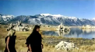 But after crossing a few more rock quarries, the couple kind of comes to loggerheads when Eve calls a halt, climbs a tree, and refuses to journey any further in service of this fool’s quest, feeling Adam’s still unexplained notion to find the sea is both hopeless and pointless. And so, with a shrug, Adam, ever the escalating cretin, just presses on without her to explore more rocks and sand and then stand around looking confused again. Eve, meanwhile, is captured by another caveman, who is a little further up the evolutionary scale than the last tribe encountered. (Have these guys stumbled into Caprona by chance?) These still aren’t the cannibals we’re searching for, so calm down. But, as her captor becomes twitterpated with her -- let's call him, Kevin (Alcázar), and she with him, he stakes a definite claim to the woman, taking her to a happening make-out spot down by the waterfall, and the two get to bonking. But then suddenly, those cannibals finally show up!
