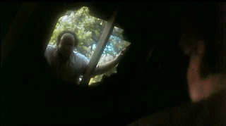 And that’s another thing that really shouldn’t fit into this kind of movie but does. Fiedel’s score, I mean. It’s strangely ethereal with modified vocals meshing into a synthesized buzz whose menacing drone really impends the dread. And while working with Lieberman, there are scenes where there should be music but there isn’t; and others where there shouldn’t be and there is as the film brilliantly uses amplified ambient noises -- the sound of rushing water, the cessation of insect chatter, even the silence of the trees, to great effect instead of the usual musical stings; though apparently someone up the chain feared the audience wouldn’t get it and added a few of those screamtrack moments just in case. And then there’s the constant play of the melancholy whistling, which Fielder claimed was mimicking Jonathan’s safety whistle but could also be read as wildlife or a form of birdcall communication between the two killers. And when you put it all together, you wind up with this glorious, Tangerine Dream-like thrum that will keep you on edge through the whole film. And Fiedel would go on to do a similar pulsating score for James Cameron’s The Terminator (1984).