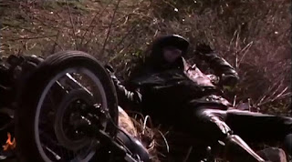 Meanwhile, several clues and eyewitness reports point to this rogue cop belonging to the R.O.T.O.R. unit. And even though he’s no longer in charge -- in fact, I don’t think he’s technically even a cop anymore, everyone keeps calling Coldyron with updates, who insists they all keep this under wraps because, apparently, despite the mounting body count and property damage, only this dip-shit can handle taking down ROTORCOP -- once he figures out to stop a machine “that’s gone berserk with only a ‘Go’ button and no compassion”. And to buy himself some time, he contacts Sonya via a handy CB radio and convinces her to keep running as bait so his runaway contraption will remain occupied -- otherwise, who knows how many other people he will slaughter with his faulty cease and deceased programming. She reluctantly agrees to this ridiculous demand, and even agrees to meet him at a designated location the following day. And, gee, I sure hope she doesn’t run out of gas before then, you self-serving jerk-off.