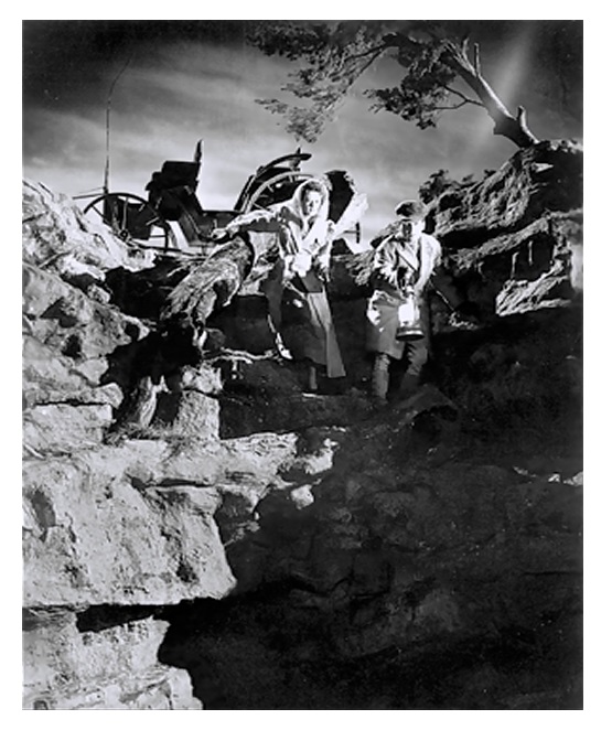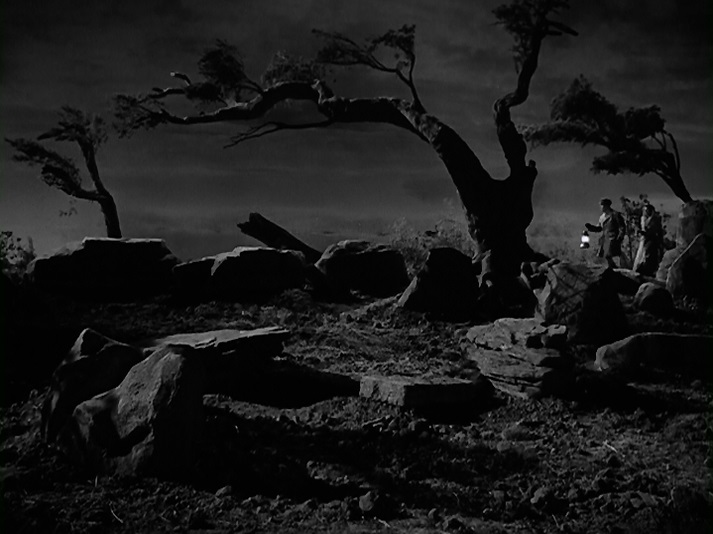 In front of the camera, considering when it was made, it’s kind of refreshing to see Brahm and screenwriters Lillie Hayward and Michael Jacoby stay true to the source material and have not one, but two, strong and very aggressive female characters in Helga Hammond and Cornelia Christopher. The opening scene after the attack, when Helga takes charge and tells the frightened menfolk around her to buck up and follow her is a bit of a welcome jolt. And while Christie is mostly played as the comedy relief and the butt of several jokes from her boss, it is the most tolerable comedy relief I’ve encountered in a film of this vintage. And on top of that, she is competent at her job and not prone to hysterics even though she believes in the supernatural. As for the men, well, aside from the debut of Charles McGraw and his amazing chin as one of the groundskeepers, they’re all pretty forgettable. James Ellison is kind of a poor man’s Ralph Bellamy. He isn’t terrible, he just seems to be trying too hard. And is it me, or is he talking louder than everyone else?