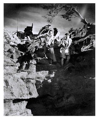 And one of The Undying Monsters smaller flaws is we never really get a good look at the werewolf. The sound design in the opening attack where we didn’t see the beast worked well enough, but the ending chase is marred by some skip-framing that makes it look rather cartoonish. And the only money shot appears to be an optical of some sort; with an apparent stuntman hanging from the rocks while John Howard’s wolfed-out face was shot somewhere else and then superimposed in later. It doesn’t quite jive but adds a little surrealism to it. There’s no one listed for make-up effects but Fred Sersen was in charge of special photographic effects. But making up for this in spades is that fantastic sequence in the lab when the monster’s hair sample disappears -- and my faulty memory had it disappearing due to the full moon going behind a cloud or the sun coming up.