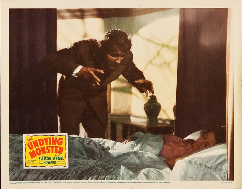 The Undying Monster (1942) 20th Century Fox / EP: William Goetz / P: Bryan Foy / D: John Brahm / W: Lillie Hayward, Michael Jacoby, Jessie Douglas Kerruish (novel) / C: Lucien Ballard / E: Harry Reynolds / M: Emil Newman, David Raksin / S: James Ellison, Heather Angel, John Howard, Bramwell Fletcher, Heather Thatcher, Halliwell Hobbes, Valerie Traxler, Aubrey Mather, Charles McGraw