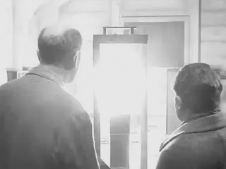 Alas, the young man has succumbed to the radiation exposure. But as Royston gets an earful from the boy’s father, feeling his atomic experiments at the AEL are the root cause of his son’s death, down in the radiology lab of the hospital, an intern and a nurse are getting a little frisky in the dark -- until something breaks into the lab and flash-fries the man alive, leaving a smoking and charred corpse and a screaming nurse behind, whose mind is now broken beyond repair over what she just witnessed.