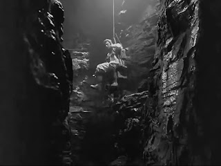 This detonation opens a large Y-shaped fissure, which appears to be bottomless -- or it’s at least beyond the range of any scanning equipment. And Lansing, who was closest to the blast, died -- not due to any trauma-induced injuries but radiation poisoning; and the man who tried to rescue him also received severe radiation burns. And perhaps strangest of all, there is now no longer any traces of radioactivity in the area. Completely baffled, a Major Cartwright (Harvey) ropes off the crevice and sends for an expert from the Atomic Energy Laboratory near Lochmouth for a second opinion, who send the brilliant but slightly eccentric Dr. Adam Royston (Jagger) to investigate; but, in the end, he winds up just as stumped as everyone else from the evidence at the scene; and the only plan of action he can suggest is to keep everyone far away from the fissure.